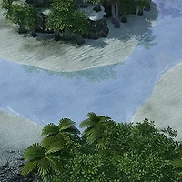 이 상태에서 'V'키를 누르면 아래와 같이 우측의 지도 상에 격자 및 경계선을 볼 수 있어 편집하는데 도움이 됩니다. 또한 반대로 다시 'V'키를 누르면 원래대로 돌아올 수 있습니다. 지형을 비롯한 각종 요소의 배치는 좌측의 팔레트에서 항목을 선택한 다음에, 우측의 지도에서 대상 지점에 마우스 왼쪽버튼을 누르면 됩니다. 지도 상에서 시점의 높이 조절은 마우스의 휠을 이용하고, 각도 조절은 'Ctrl' 키와 마우스의 우측버튼을 함께 누른 채 끌면 할 수 있습니다.